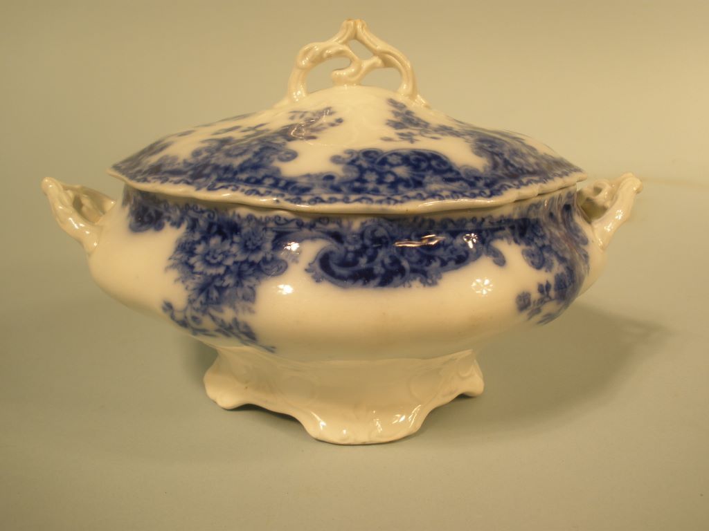 Flow Blue Tureen. B Ro No 324171, h. 5" x w. 8". No apparent chips, discoloration or flaws. Flow Blue Tureen. B Ro No 324171, h. 5" x w. 8". No apparent chips, discoloration or flaws.