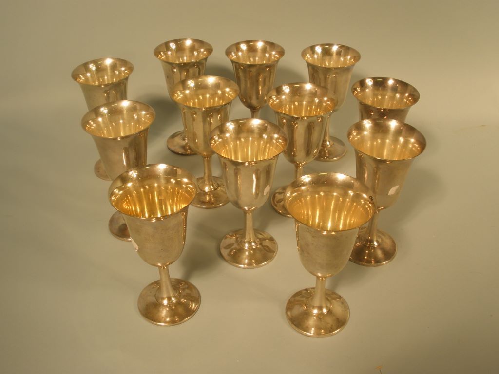 Set of 12 Wallace Sterling Goblets. The word "Wallace Sterling" engraved on bottom of each cup. -h. 6 5/8" Set of 12 Wallace Sterling Goblets. The word "Wallace Sterling" engraved on bottom of each cup. -h. 6 5/8"