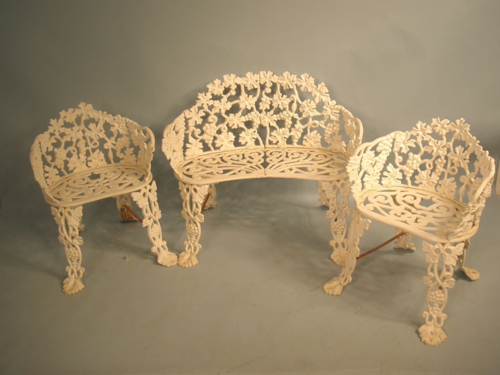 Wrought Iron Garden Table set consisting of bench, table and two chairs. -h. 28" Wrought Iron Garden Table set consisting of bench, table and two chairs. -h. 28"