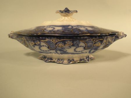 Flow Blue Tureen. Delamere, Royal Premier, Semi porcelain, Henry Alcock and Co., England, Shape 414424, FB. -h. 5" x w. 12". No apparent chips, discoloration or flaws. Flow Blue Tureen. Delamere, Royal Premier, Semi porcelain, Henry Alcock and Co., England, Shape 414424, FB. -h. 5" x w. 12". No apparent chips, discoloration or flaws.