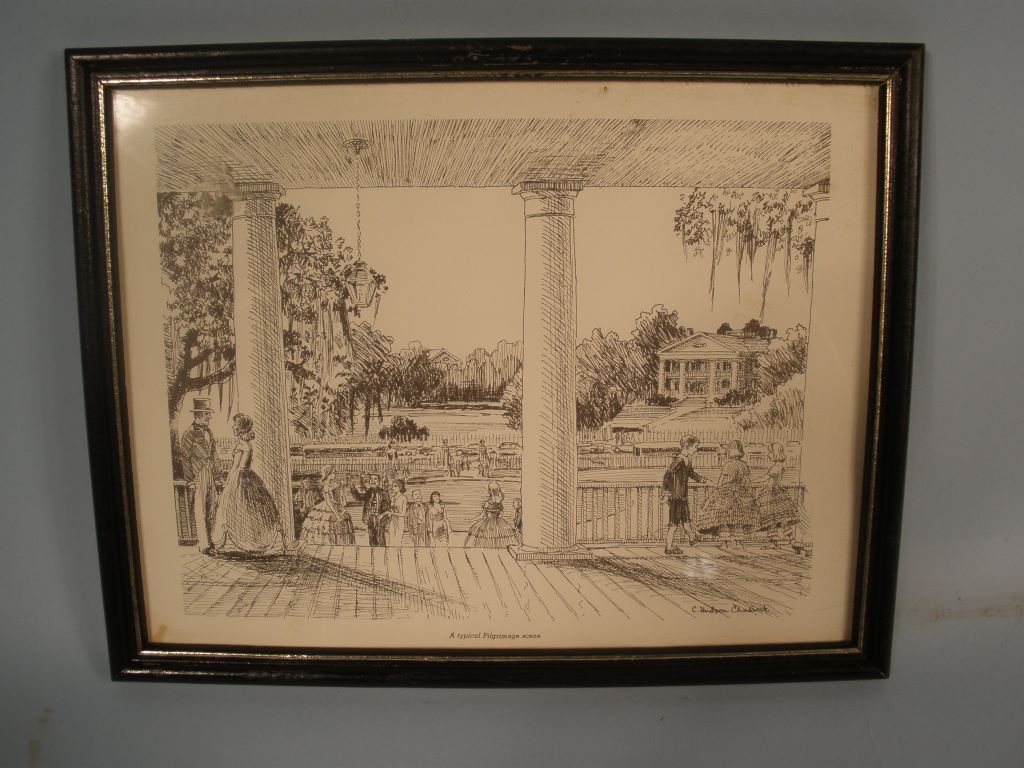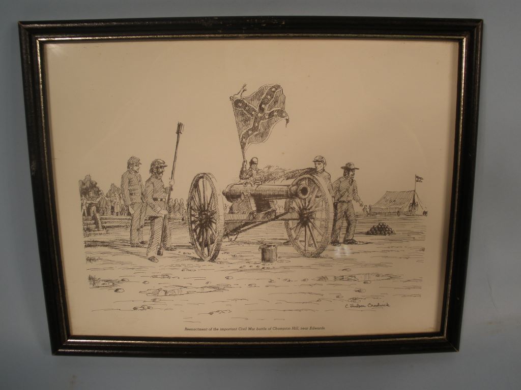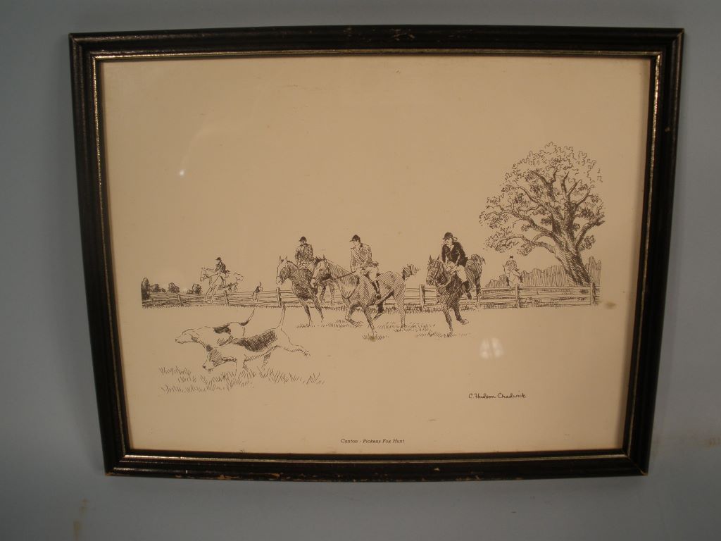 Etching "Canton-Pickens Fox Hunt" signed C. Hudson Chadwick. -h. 9 1/2" x w. 11 3/4", Etching "A Typical Pilgrimage Scene" signed C. Hudson Chadwick. -h. 9 1/2" x w. 11 3/4", Etching "Harness Racing at the Neshoba County Fair-Philadelphia" signed C. Hudson Chadwick. -h. 9 1/2" x w. 11 3/4", and Etching "Reenactment of the Important Civil War battle of Champion Hill, near Edwards", signed C. Hudson Chadwick. -h. 9 1/2" x w. 11 3/4" Etching "Canton-Pickens Fox Hunt" signed C. Hudson Chadwick. -h. 9 1/2" x w. 11 3/4", Etching "A Typical Pilgrimage Scene" signed C. Hudson Chadwick. -h. 9 1/2" x w. 11 3/4", Etching "Harness Racing at the Neshoba County Fair-Philadelphia" signed C. Hudson Chadwick. -h. 9 1/2" x w. 11 3/4", and Etching "Reenactment of the Important Civil War battle of Champion Hill, near Edwards", signed C. Hudson Chadwick. -h. 9 1/2" x w. 11 3/4"