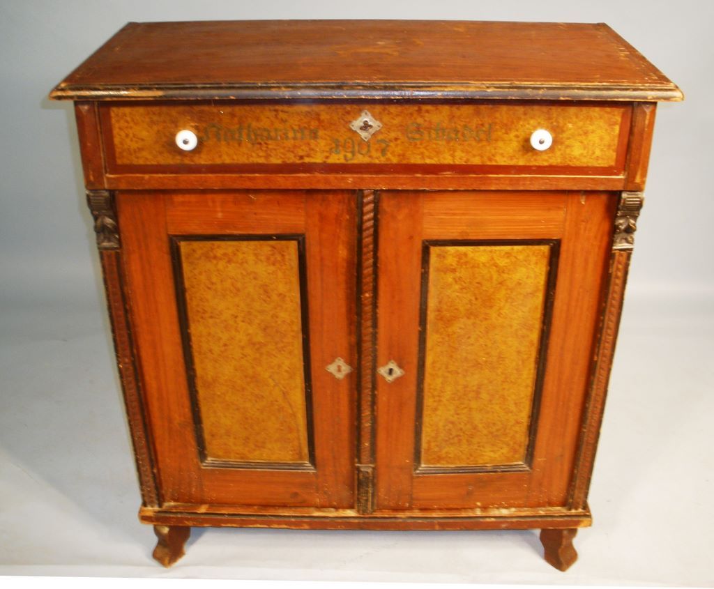393 Early Pine Pantinated Cabinet Dated 1907