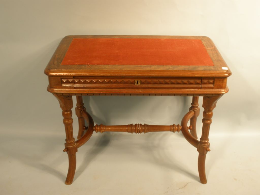 Walnut Eastlake Writing Desk with Leather Top. -h. 29" x w. 35 1/2" d. 21 1/2" Walnut Eastlake Writing Desk with Leather Top. -h. 29" x w. 35 1/2" d. 21 1/2"