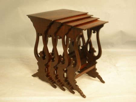 Rosewood Gothic nest of 4 tables. Dimensions of largest table -h. 28 1/2" x w. 22" Rosewood Gothic nest of 4 tables. Dimensions of largest table -h. 28 1/2" x w. 22"