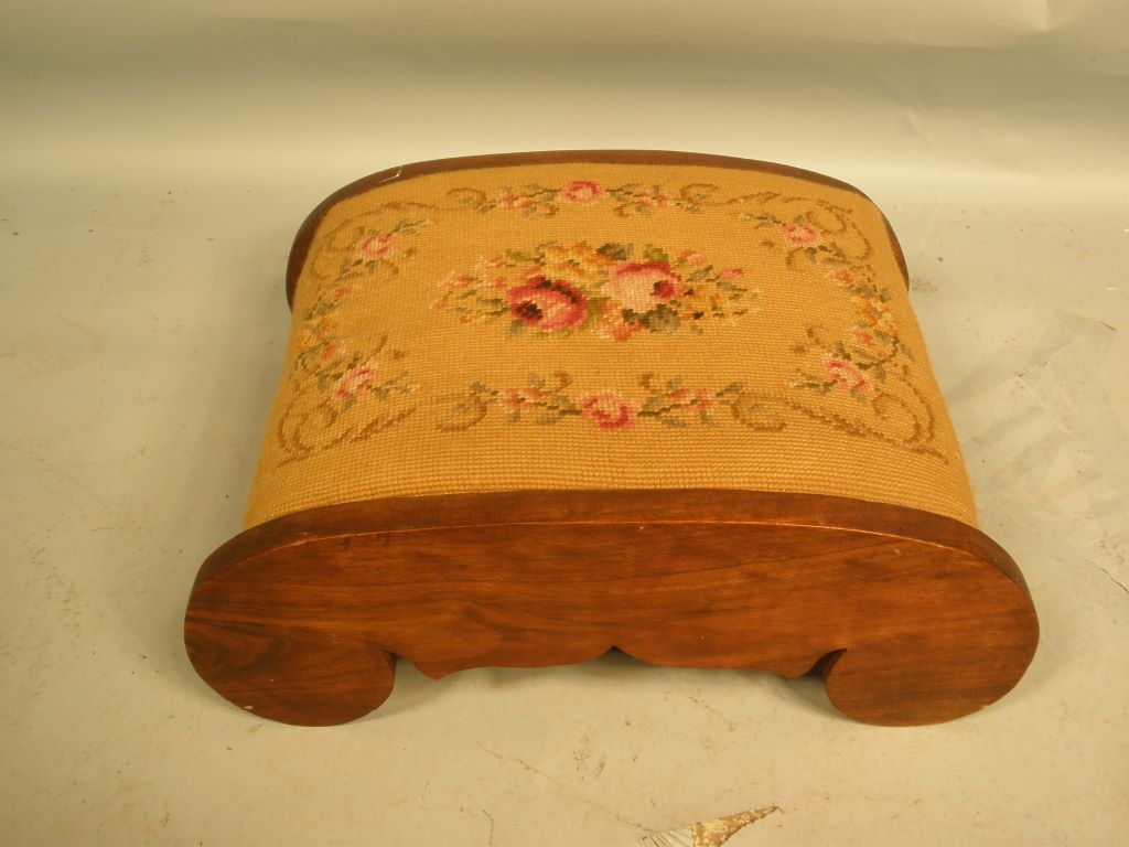 429 Walnut needlepoint Footstool