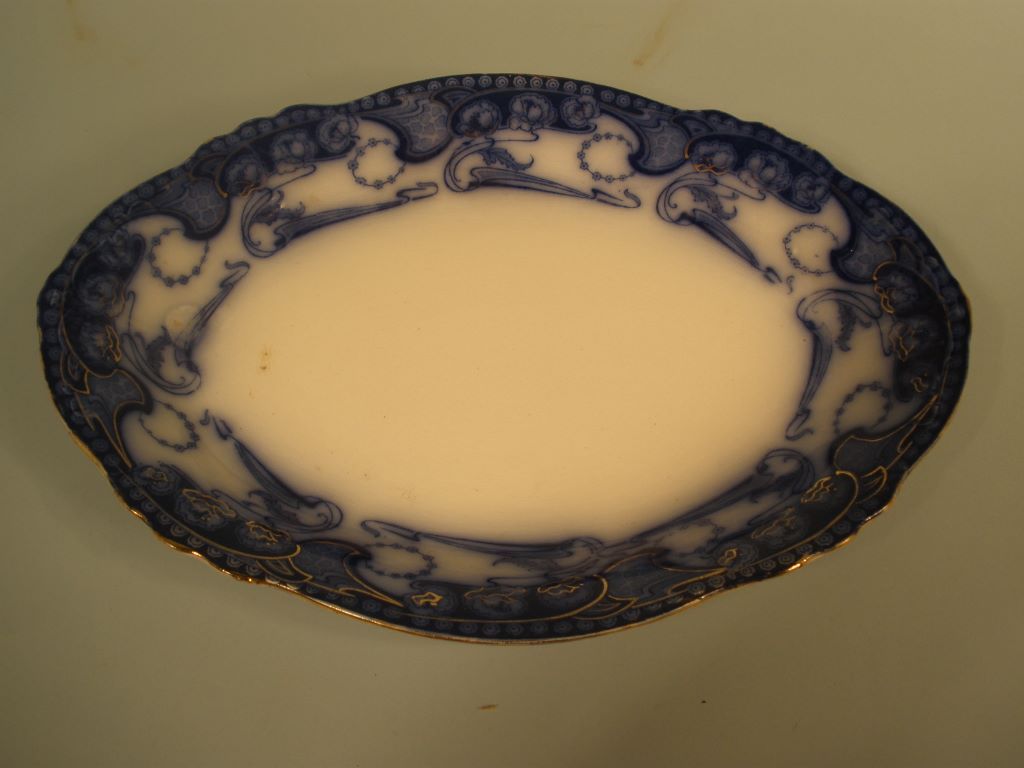 Large Flow Blue Platter. FB, Delamere, Royal Premier, Semi Porcelain, Henry Alcock and Co., England. -h. 2" x w. 16". No apparent chips, discoloration or flaws. Large Flow Blue Platter. FB, Delamere, Royal Premier, Semi Porcelain, Henry Alcock and Co., England. -h. 2" x w. 16". No apparent chips, discoloration or flaws.