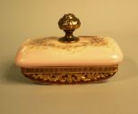 Rare C. F. Monroe Gilded Britannia Metal-Mounted Pink Wave Crest Glass Rocker Blotter, fourth quarter 19th century, h. 4", w. 3-1/2", l. 6". For a similar, but not identical, Wave Crest blotter, see W. R. Cohen, Wave Crest, The Glass of C. F. Monroe, Collector Books, 1987, p. 73, upper photograph, center. Rare C. F. Monroe Gilded Britannia Metal-Mounted Pink Wave Crest Glass Rocker Blotter, fourth quarter 19th century, h. 4", w. 3-1/2", l. 6". For a similar, but not identical, Wave Crest blotter, see W. R. Cohen, Wave Crest, The Glass of C. F. Monroe, Collector Books, 1987, p. 73, upper photograph, center.