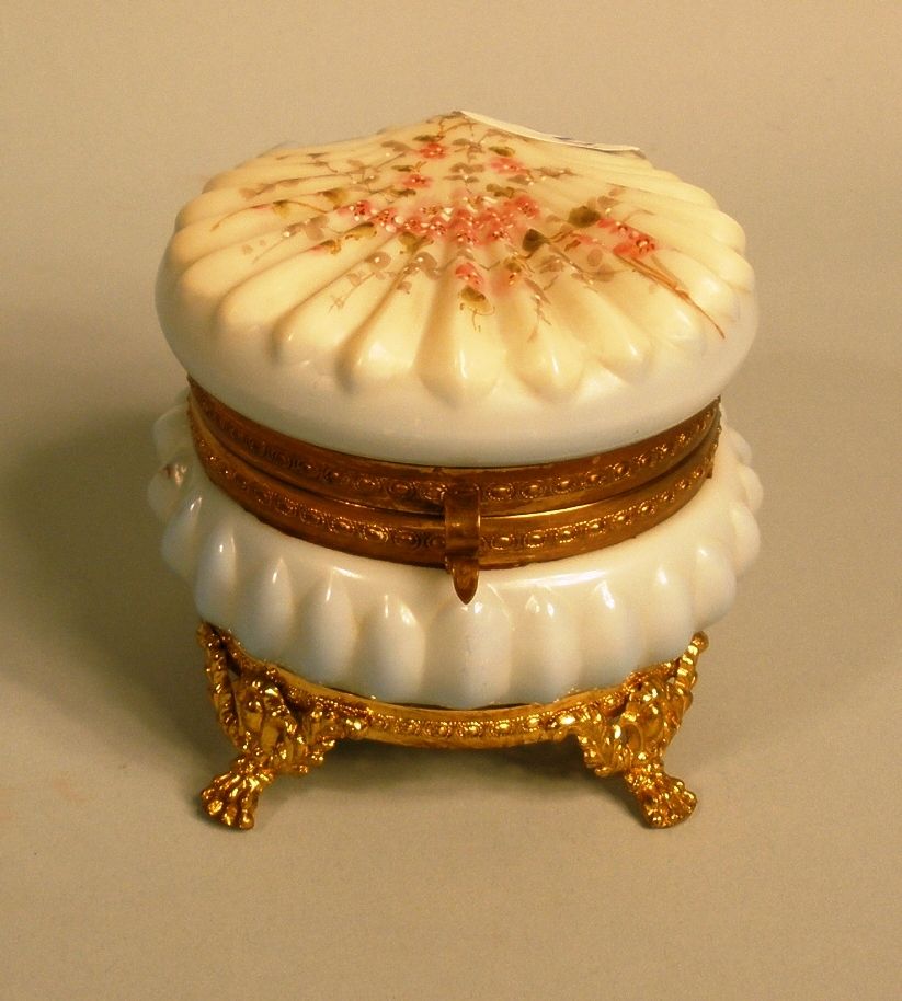 575 Good Gilt-Brass-Mounted Wave Crest Pale Blue Glass Jewel Box