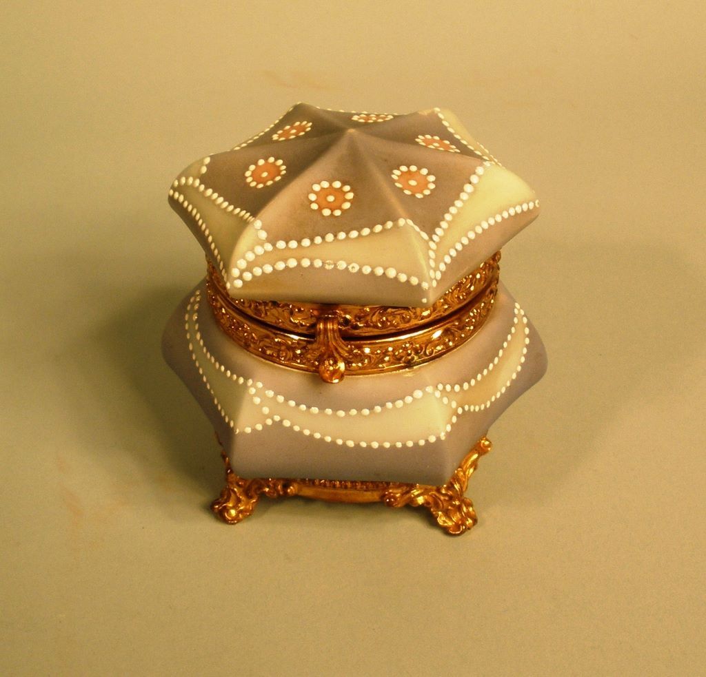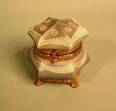 579 Good Gilt-Brass-Mounted Nakara Glass Hexagonal Footed Dresser Box