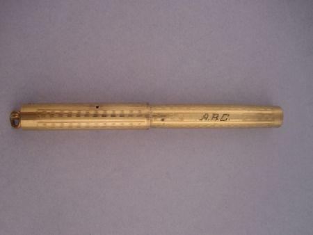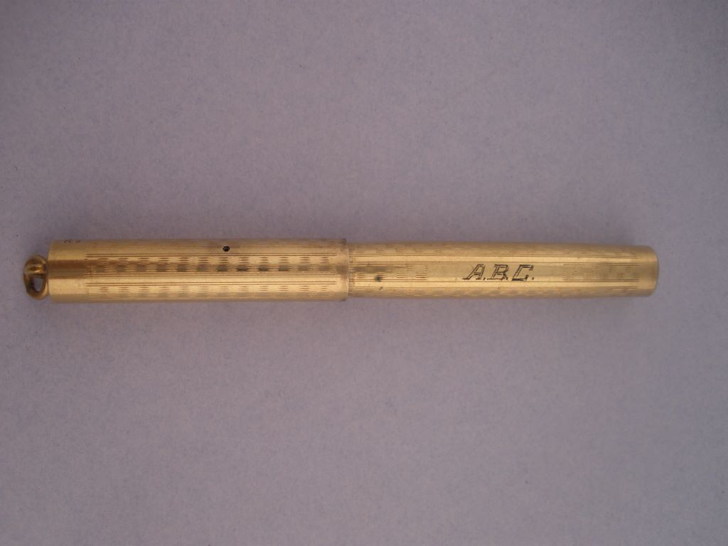 Small Gold Quill Pen with initials A.B.C. engraved, L. 3" Small Gold Quill Pen with initials A.B.C. engraved, L. 3"