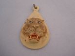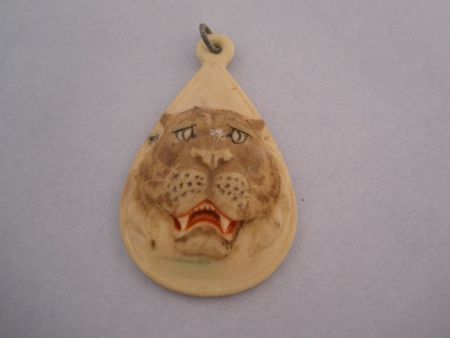 Very nice, tear drop shape pendant with raised Tigers head on front. Appears to be Ivory. -h. 2" x w. 1 1/3" Very nice, tear drop shape pendant with raised Tigers head on front. Appears to be Ivory. -h. 2" x w. 1 1/3"