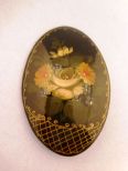 Black Lacquer hand painted with floral tale design. Marked WYNEMUMA '94. -h. 2" x w. 1 1/2" Black Lacquer hand painted with floral tale design. Marked WYNEMUMA '94. -h. 2" x w. 1 1/2"