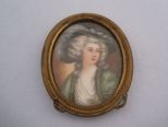 Small oval shape Framed Portrait of Victorian Lady, painted on celleloid. - h. 2 1/2" x w. 2" Small oval shape Framed Portrait of Victorian Lady, painted on celleloid. - h. 2 1/2" x w. 2"