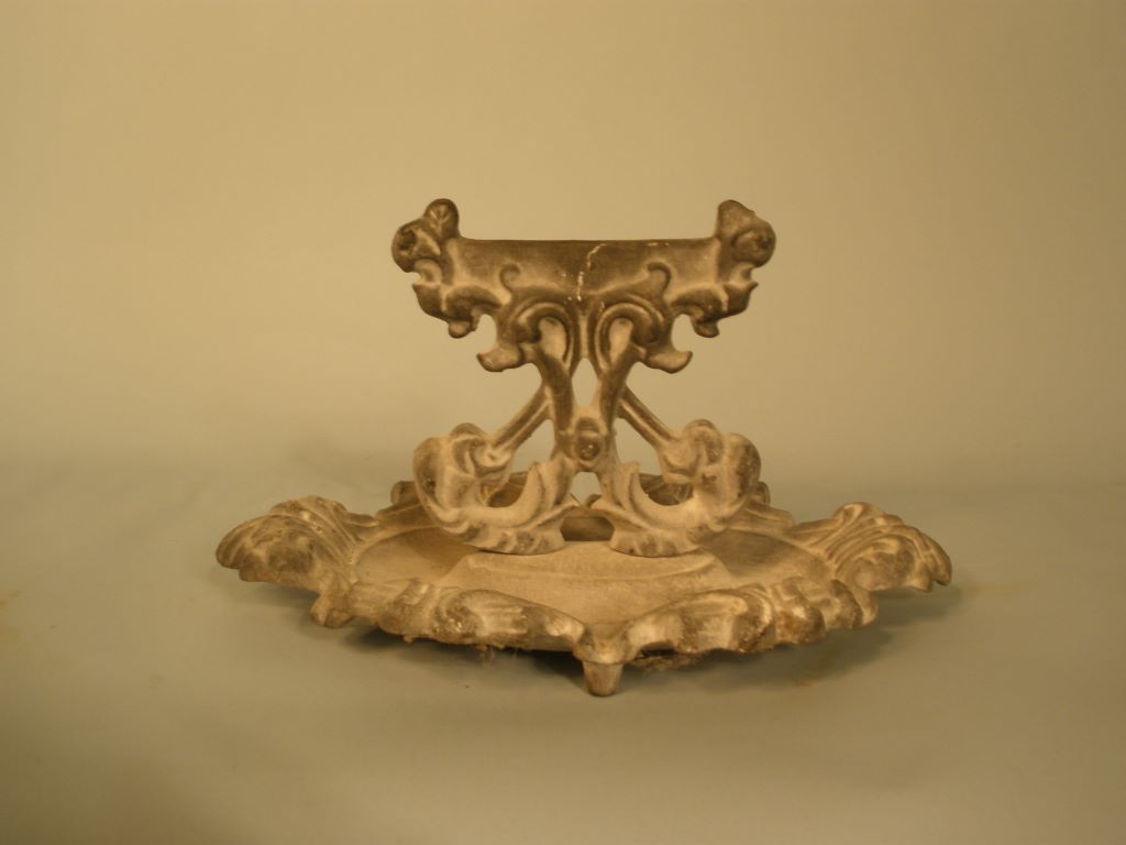 Very unusual heavy iron boot scraper. Scroll design scraper mounted on oval catch plate. H. 7 1/2" x w. 13" Very unusual heavy iron boot scraper. Scroll design scraper mounted on oval catch plate. H. 7 1/2" x w. 13"