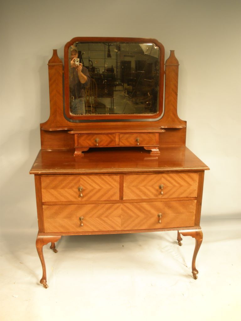 Nice Queen Anne Engligh 3 drawer dresser with 2 trinket drawers on top. Dresser has oval beveled mirror on swivel mount.-h. 62" x w. 42" d. 20" Nice Queen Anne Engligh 3 drawer dresser with 2 trinket drawers on top. Dresser has oval beveled mirror on swivel mount.-h. 62" x w. 42" d. 20"