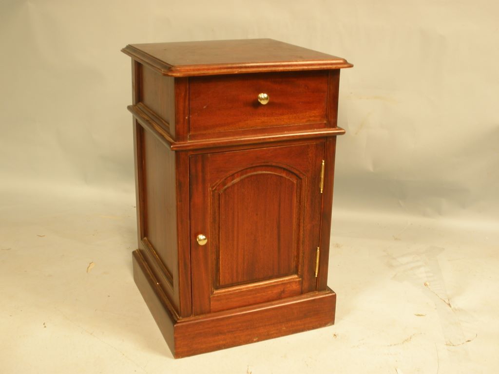 Small square Mahogany night stand with drawer and single door front. H. 24" x w. 16" d. 16" Small square Mahogany night stand with drawer and single door front. H. 24" x w. 16" d. 16"