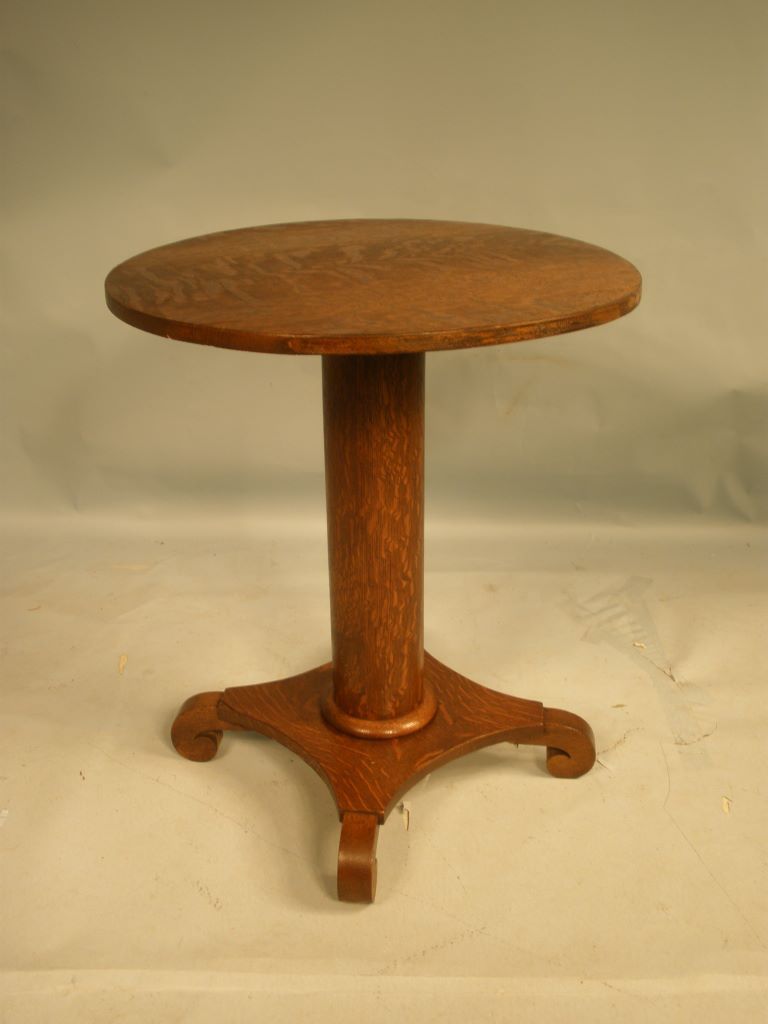 Round Oak Center Pedastal Table, 4 curled feet, h. 30" dia. 26" Round Oak Center Pedastal Table, 4 curled feet, h. 30" dia. 26"