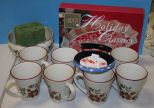 217 Set of Eight Longaberger Christmas Coffee Mugs, Mikasa Holiday Pattern Planter and a Snowman Tray