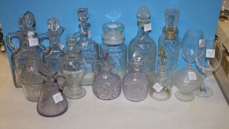 Large Group of Glass Decanters, Jars and Stoppers; twenty pieces total Large Group of Glass Decanters, Jars and Stoppers; twenty pieces total