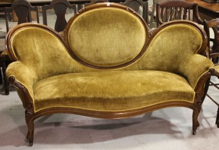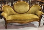 Walnut Victorian Cameo Back Sofa, 39"h., 69"w., 25"d. Walnut Victorian Cameo Back Sofa, 39"h., 69"w., 25"d.
