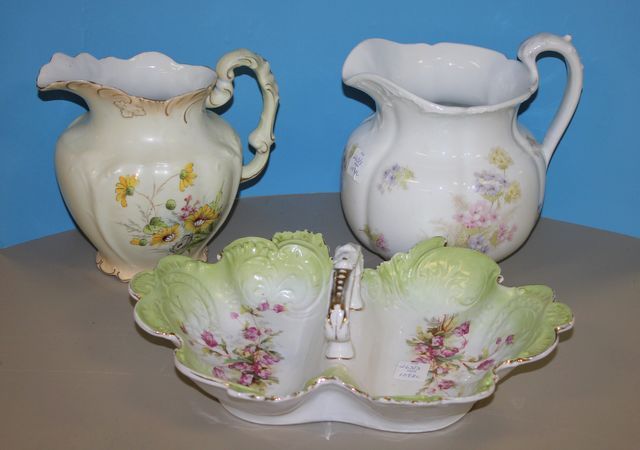 263 Porcelain Hand Painted Lobster Dish and Two Water Pitchers