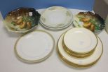 Hand Painted Porcelain Bowl with matching Bowl and Three Hand Painted Plates Hand Painted Porcelain Bowl with matching Bowl and Three Hand Painted Plates