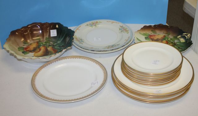 308 Hand Painted Porcelain Bowl with matching Bowl and Three Hand Painted Plates