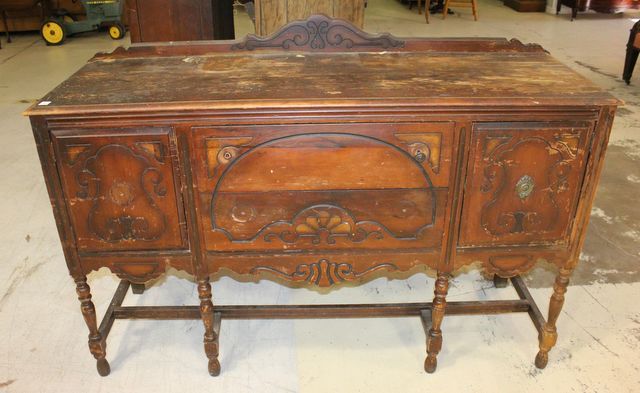 312 Walnut Depression Sideboard as-is, needs refinishing; matches lot # 313, 314, and 315.