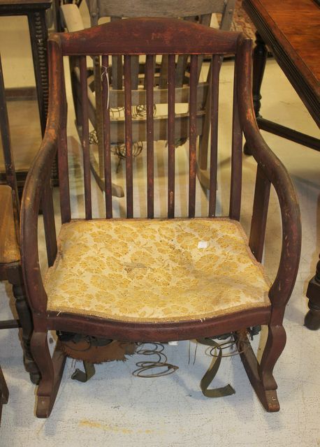 Mahogany Empire Arm Rocker, needs refinishing. Mahogany Empire Arm Rocker, needs refinishing.
