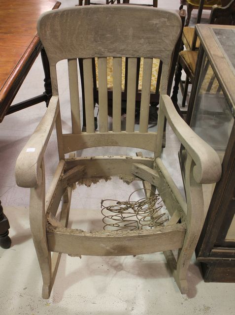 Oak Arm Rocker, as-is, needs refinishing, 37"h. Oak Arm Rocker, as-is, needs refinishing, 37"h.