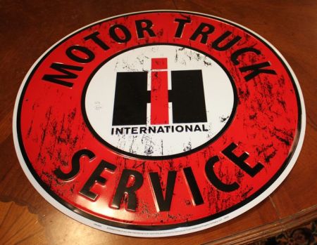 Reproduction Metal International Harvester Sign 24" round. Reproduction Metal International Harvester Sign 24" round.