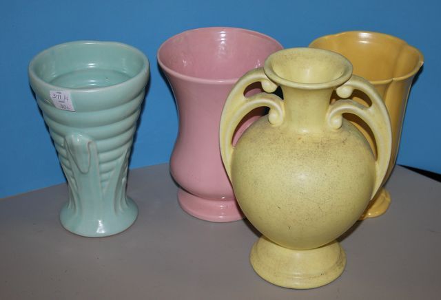 Four Pottery Vases 8"-10" h. Four Pottery Vases 8"-10" h.