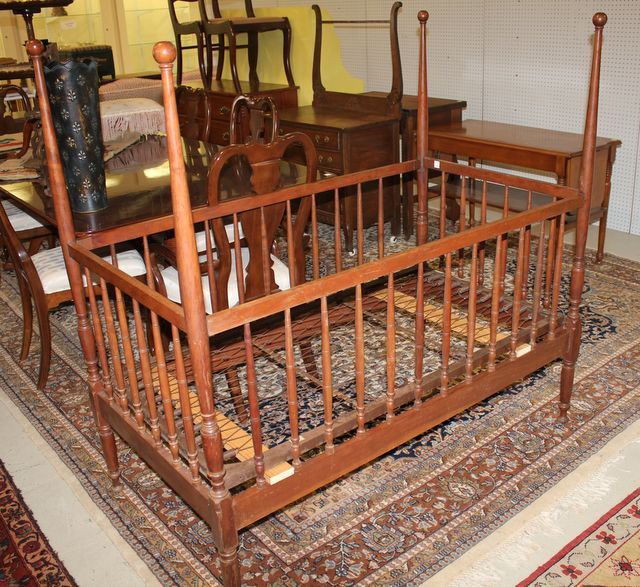 Early Cherry Poster Baby Bed, 54"h., 55"L., 30"w. Early Cherry Poster Baby Bed, 54"h., 55"L., 30"w.