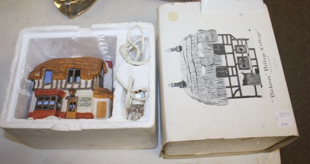 448 Two Dickens Village Painted Porcelain House Porcelain house is a light up, 5"w., 6"h.
