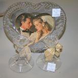 463 Heart Shaped Frame and Pair of Glass Candlesticks candlesticks 4"h.
