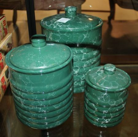 3 pc. Green with White Swirls Canister Set 3 pc. Green with White Swirls Canister Set