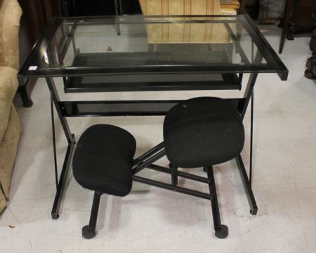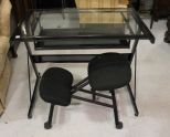 Contemporary Glass Top Computer Desk with Stool, 37"w., 24"d., 29"h. Contemporary Glass Top Computer Desk with Stool, 37"w., 24"d., 29"h.