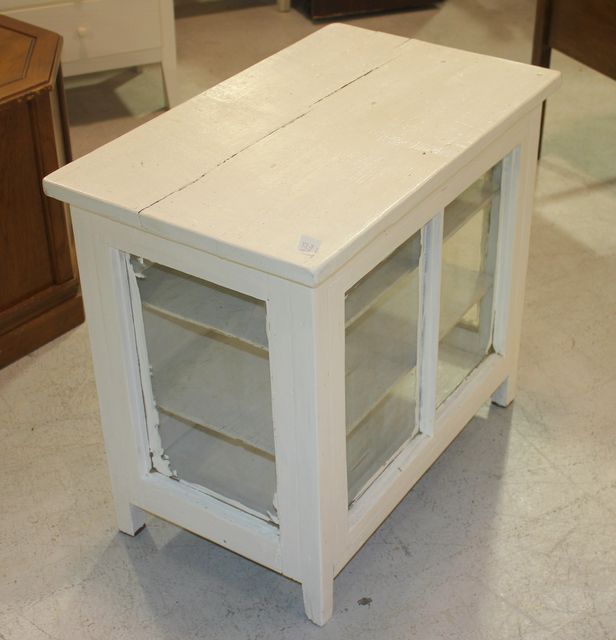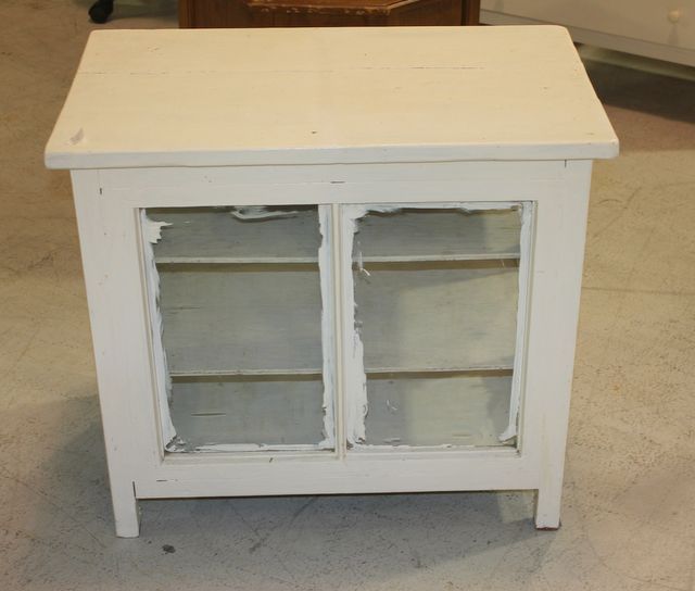 Painted White Glass Cabinet with Shelf, 28"w., 17"d., 25"h. Painted White Glass Cabinet with Shelf, 28"w., 17"d., 25"h.