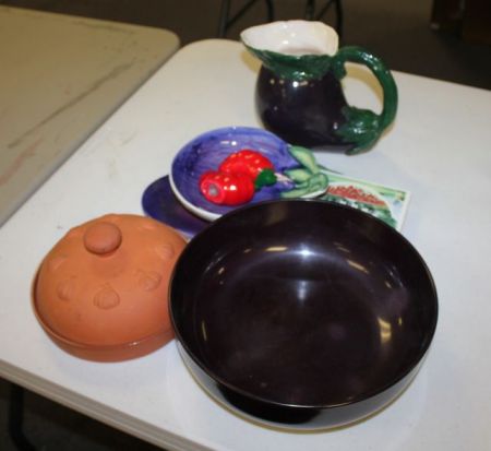 Ceramic Kitchen Items and Wood Bowl Ceramic Kitchen Items and Wood Bowl