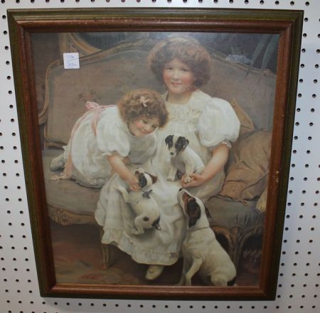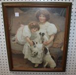 Print of 2 Girls with Puppies Print of 2 Girls with Puppies
