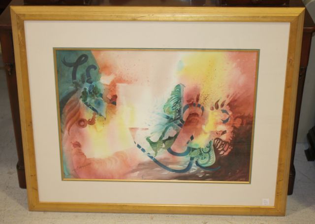 Large Watercolor (Abstract) by Mississippi Artist A. Dennis No title, signed A. Dennis; 41" w., 33" h. Large Watercolor (Abstract) by Mississippi Artist A. Dennis No title, signed A. Dennis; 41" w., 33" h.