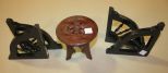 Four Black Wood Brackets and Vase Stand Brackets are 7", 7 1/2"; stand 5" dia., 6" h. Four Black Wood Brackets and Vase Stand Brackets are 7", 7 1/2"; stand 5" dia., 6" h.