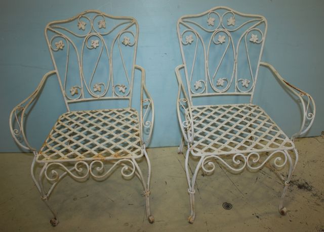 151 Pair of White Wrought Iron Arm Chairs Matches lot #164 and 165