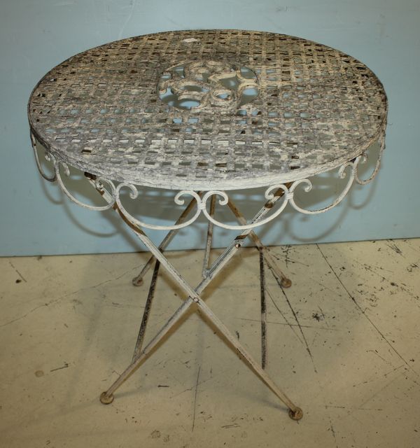 Folding Wrought Iron Patio Table 27" dia., 29 1/2" h. Folding Wrought Iron Patio Table 27" dia., 29 1/2" h.