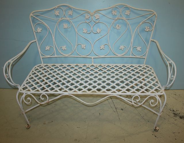 165 White Wrought Iron Settee Matches lot #151 and 164; 48" w., 38" h.