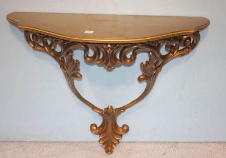 Gold Wall Shelf 27 1/2" w., 10" d., 21" h. Gold Wall Shelf 27 1/2" w., 10" d., 21" h.