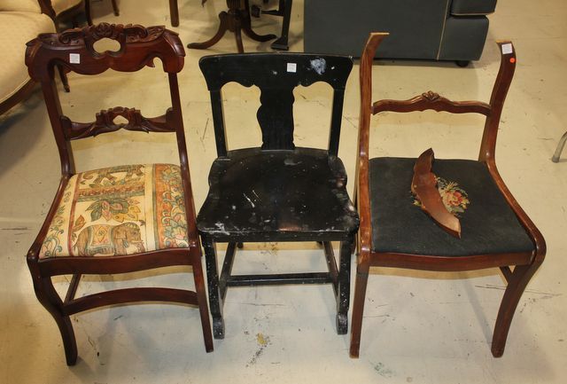 Three Antique Chairs Empire style side chair, Empire Revival chair, and Victorian side chair Three Antique Chairs Empire style side chair, Empire Revival chair, and Victorian side chair