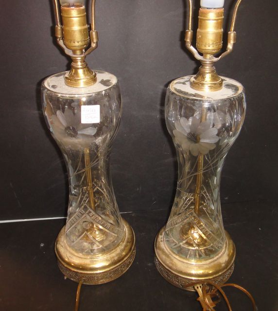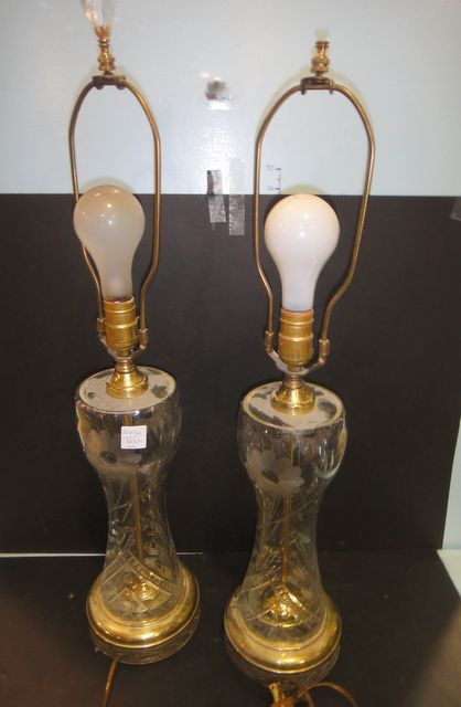 249 Two Cut Glass Lamps 29" h.