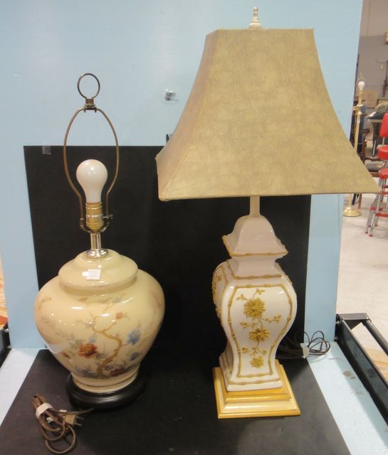 251 Ginger Jar Shaped Lamp and Porcelain Bulbous Lamp Ginger jar lamp 33" h. and bulbous lamp 28" h.