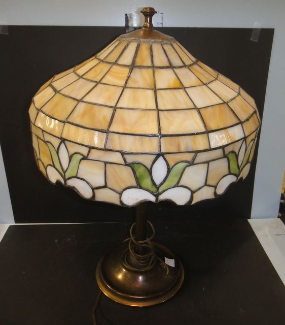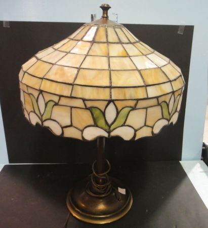 Stain Glass, Brass Base Lamp 25" h. Stain Glass, Brass Base Lamp 25" h.